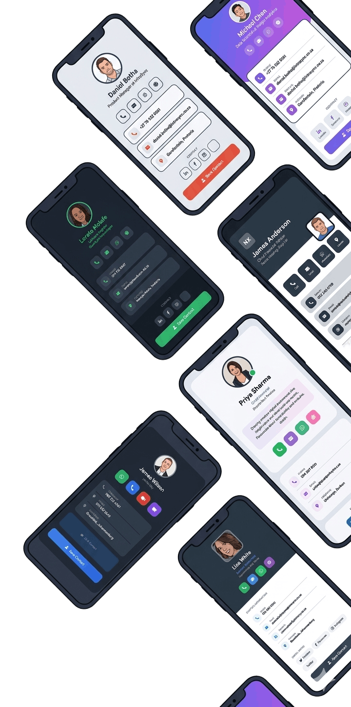 Professional digital business card solutions for individuals, teams, and enterprise organizations. Share validated contact details, social channels, and portfolios instantly via tap or QR.